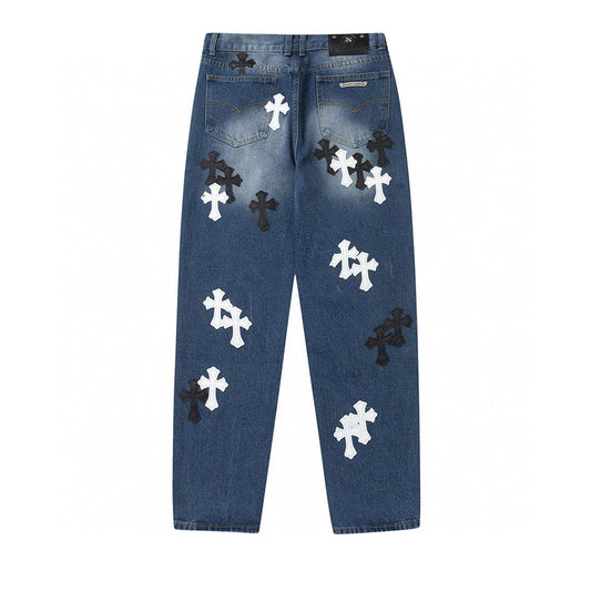 CHROME HEARTS BLUE CROSS PATCH JEANS DENIM