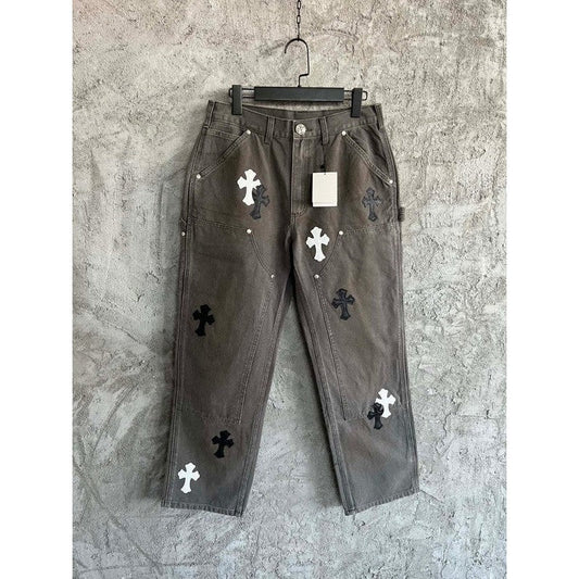 CHROME HEARTS BLACK CROSS PATCH JEANS BLACK