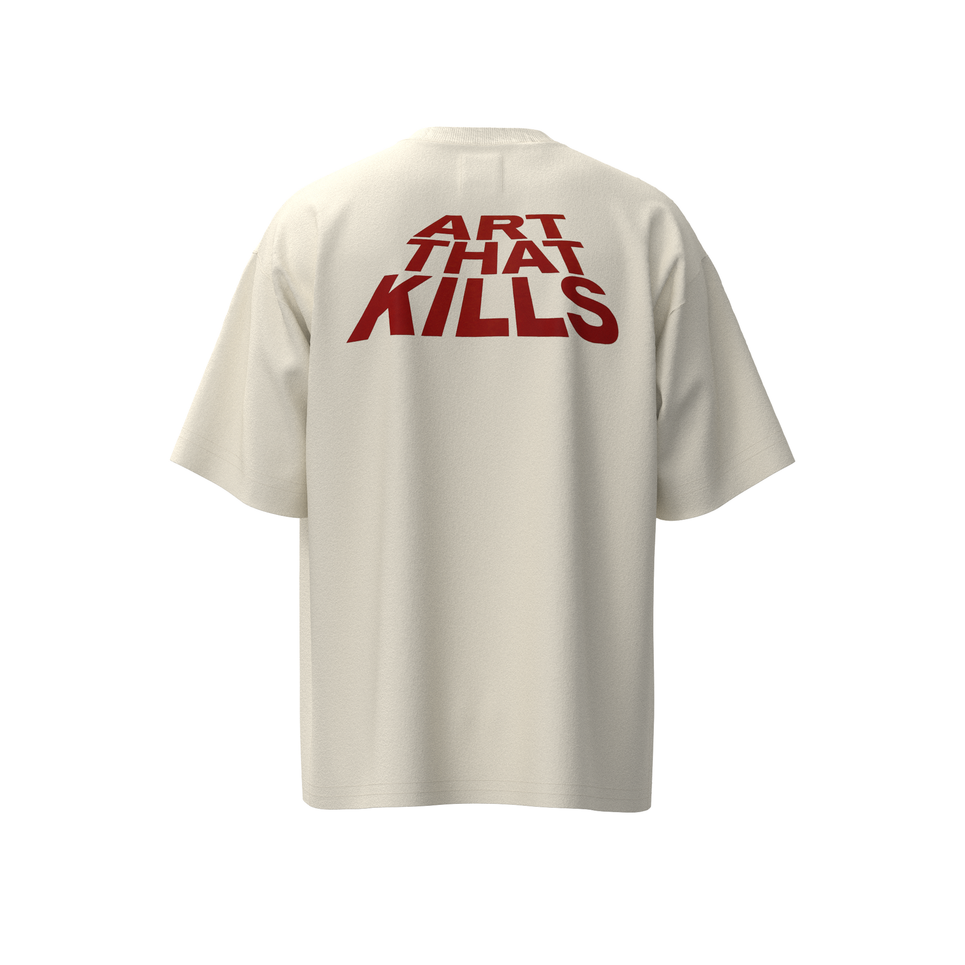 The shirt's oversized fit provides a modern, relaxed silhouette, perfect for pairing with your favorite jeans, shorts, or joggers. The crew neckline and short sleeves maintain a classic look, while the off-white color adds versatility to your outfit choices.