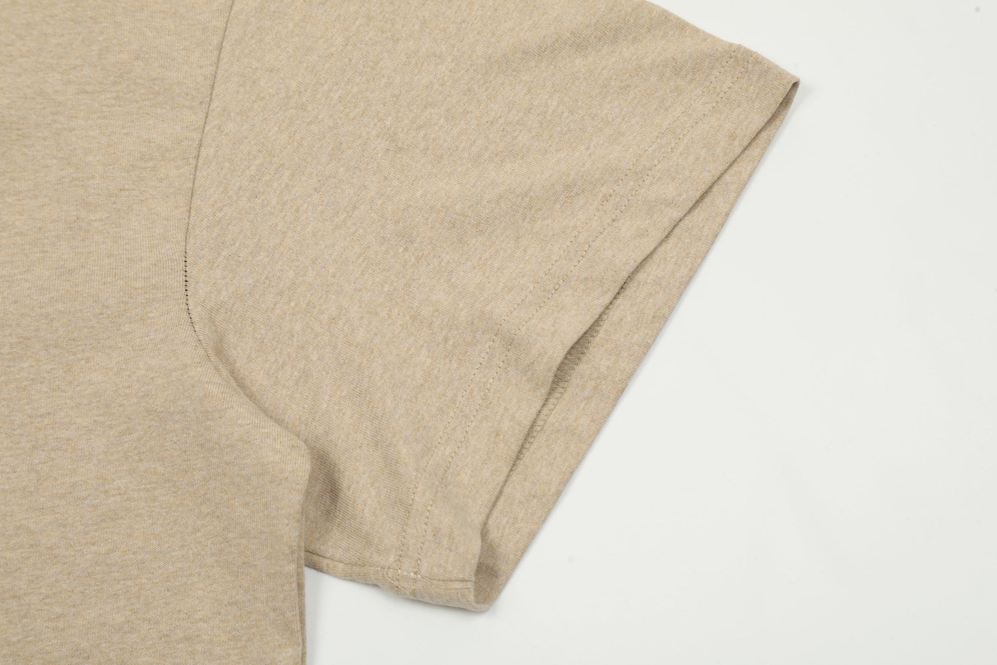 The neutral beige color of the shirt provides a versatile backdrop, allowing the colorful graphic to take center stage. The classic crew neck and relaxed fit ensure a comfortable and flattering silhouette, perfect for everyday wear.