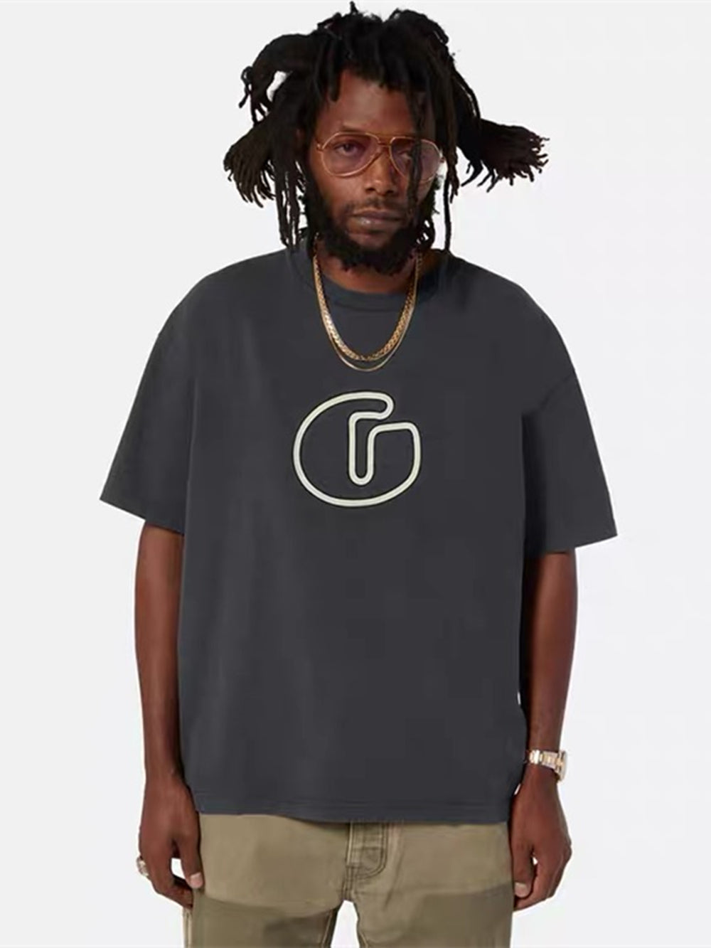 The design showcases a prominent "G" logo at the center of the chest. This minimalist logo, outlined in a sleek and modern style, adds a touch of sophistication to the t-shirt. The simplicity of the design allows it to be effortlessly paired with various outfits, making it a staple piece for any wardrobe.
