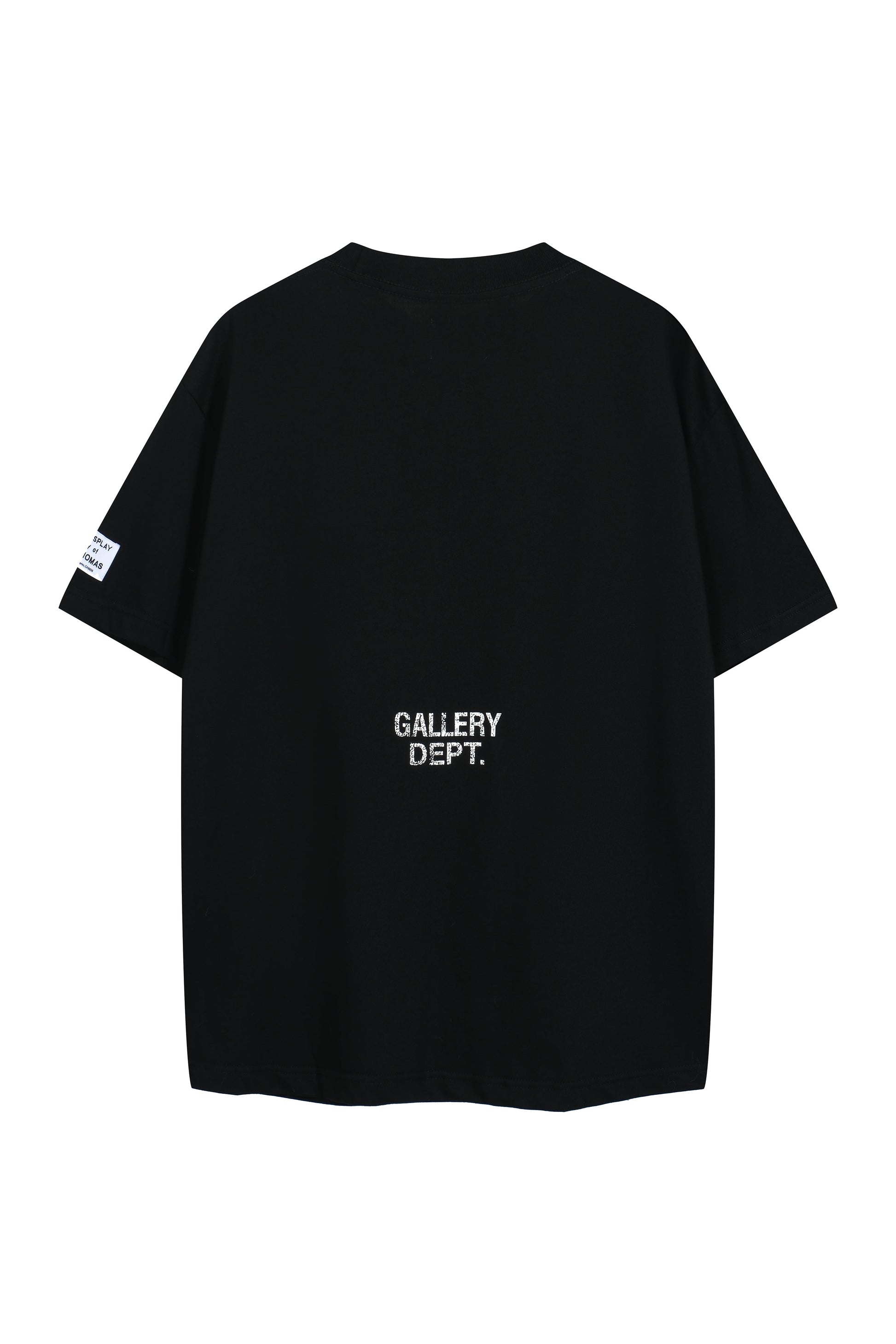 The design features the iconic "GALLERY DEPT." logo subtly printed in white on the front, adding a touch of sophistication without overwhelming the simplicity of the shirt. This understated logo placement highlights the brand's commitment to blending art with fashion, making a quiet yet powerful statement.