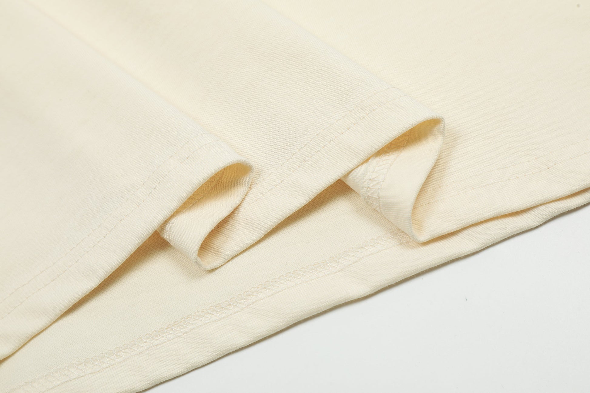 The t-shirt comes in a versatile off-white color, which acts as a neutral canvas that pairs well with a variety of outfits. The classic crew neck and short sleeves offer a timeless silhouette, while the relaxed fit adds a contemporary touch, making it a versatile addition to your wardrobe.