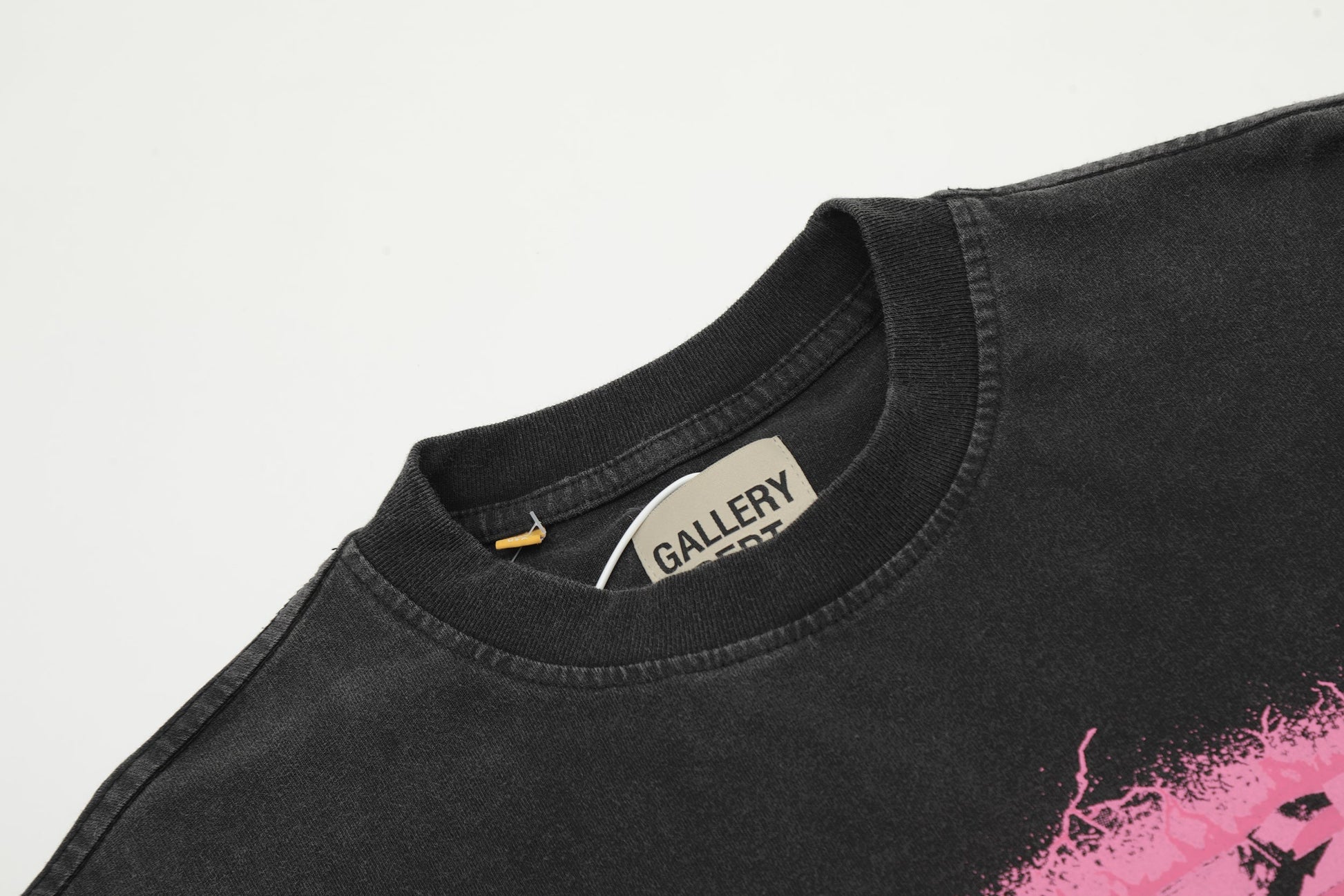 The standout feature of this T-shirt is the vibrant hand-painted graphic on the front, showcasing a striking pink and black design inspired by rock and roll aesthetics. The graphic features "The Black Key" text and an edgy illustration, exuding a rebellious and artistic vibe. Each piece is meticulously hand-painted, making every T-shirt unique and reflecting Gallery Dept.'s dedication to craftsmanship and individuality.