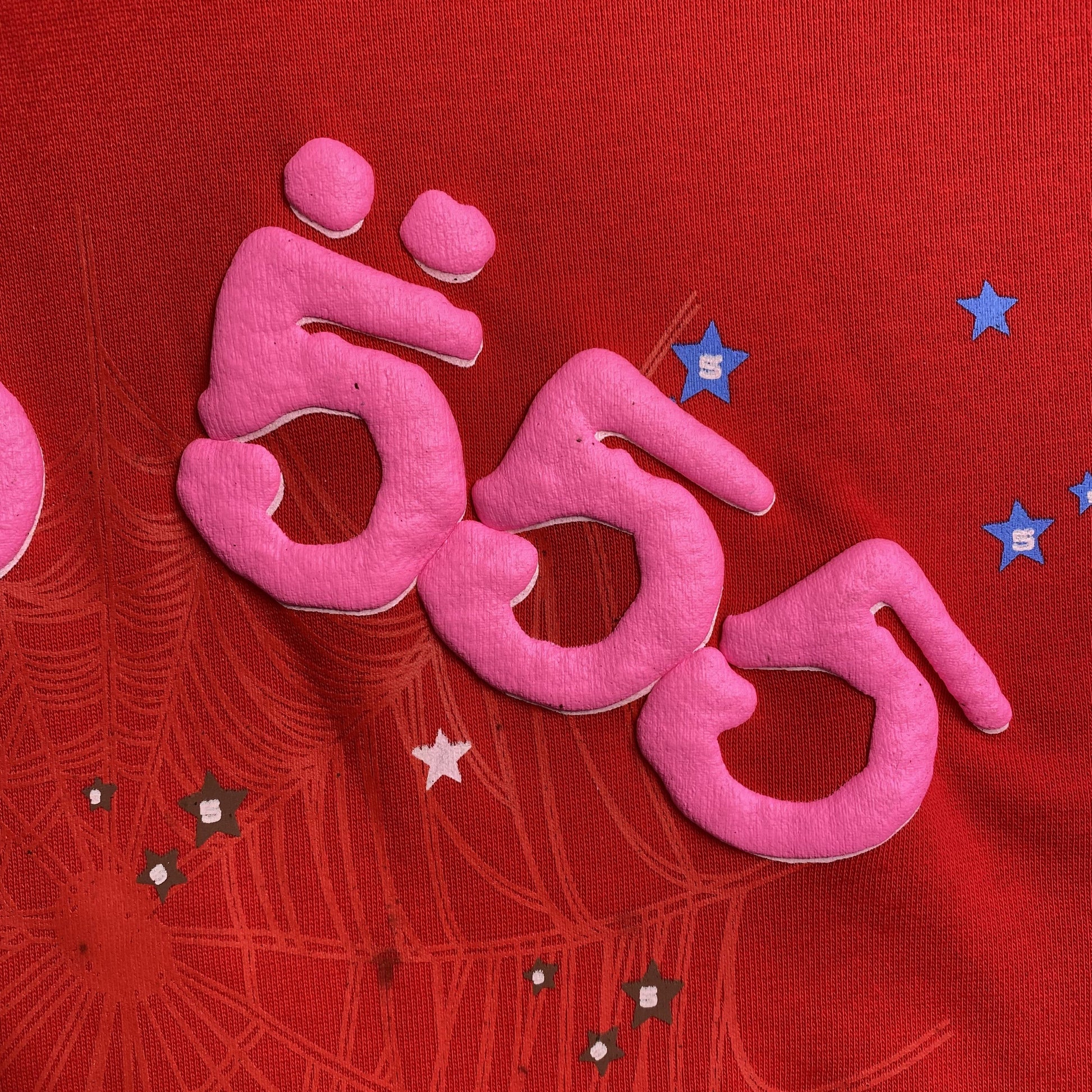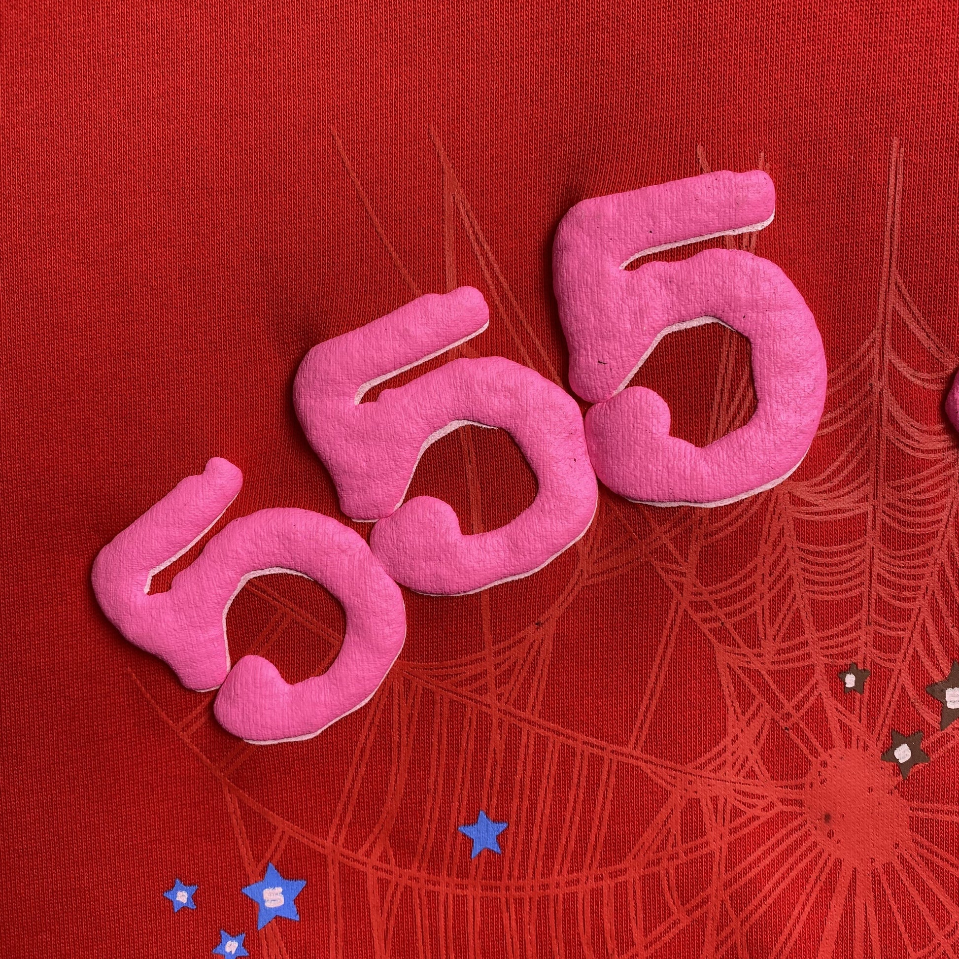 SP5DER WORLDWIDE RED ANGEL NUMBER 555 HOODIE RED