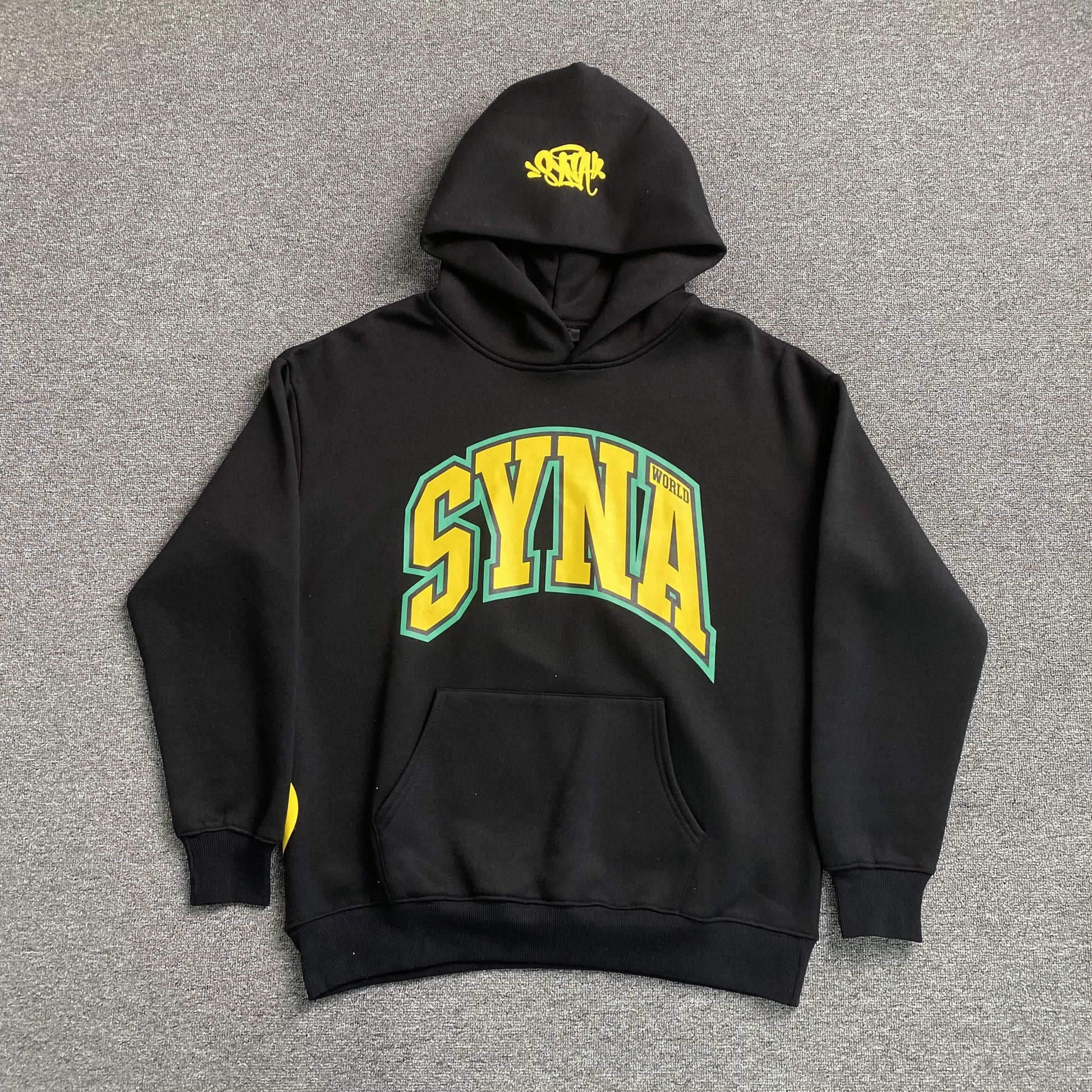 RETRO VARSITY STYLE WITH A STREETWEAR EDGE. The Syna World College Hoodie in Black blends classic collegiate aesthetics with bold urban fashion, featuring the signature oversized fit, premium cotton fabric, and standout varsity-style branding. Designed for ultimate comfort and effortless style, this hoodie is a streetwear essential.